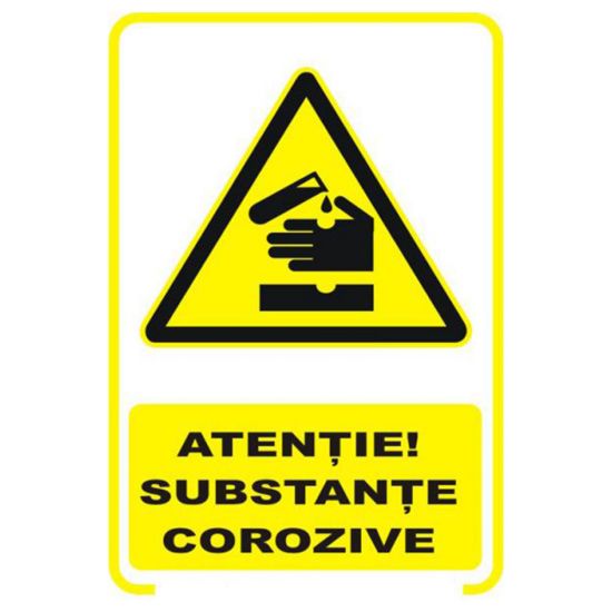 Placuta indicatoare de securitate de avertizare, atentie, substante corozive, Onsec, 200x300 mm, PVC, 3 mm
