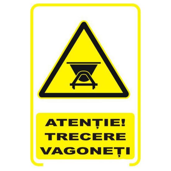 Semne si indicatoare / Placute de avertizare / Placuta indicatoare de securitate si avertizare, trecere vagoneti, Onsec, 200x300 mm, PVC, 2 mm