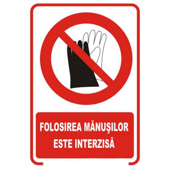 Placuta indicatoare de securitate si interzicere, folosirea manusilor este interzisa, Onsec, 200x300 mm, PVC, 2 mm