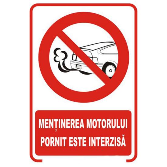Placuta indicatoare de securitate si interzicere, mentinerea motorului pornit este interzisa, Onsec, 200x300 mm, PVC, 2 mm